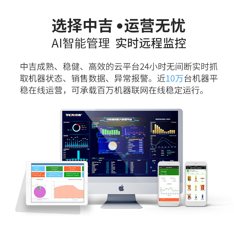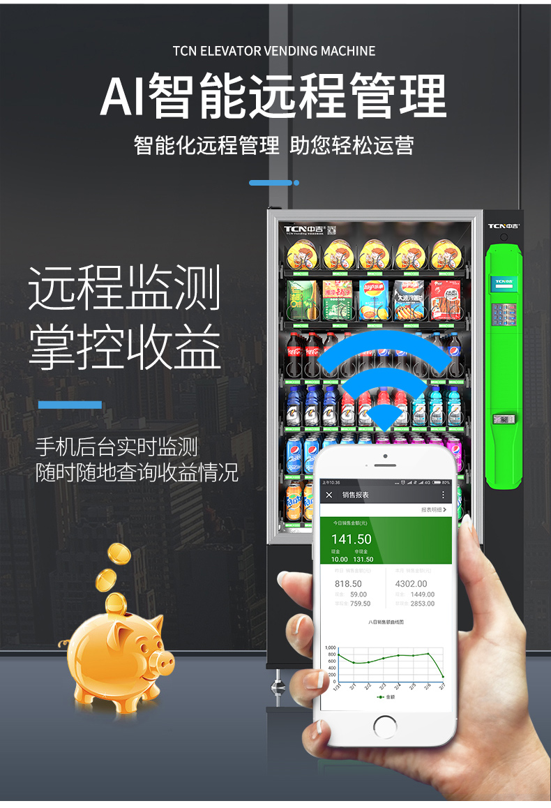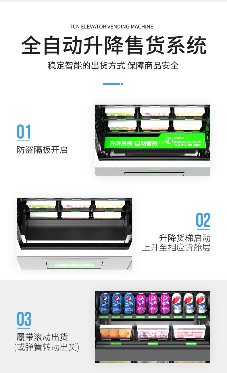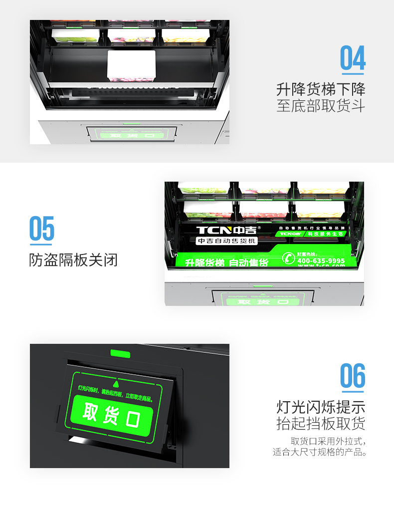 中吉11C生鲜牛奶药品易碎品中间取货售货机定制 | 全程标配光电出货检测系统,最大程度的减少卡货。升降取货,防爆、防尘、,防水夜光金属键盘。