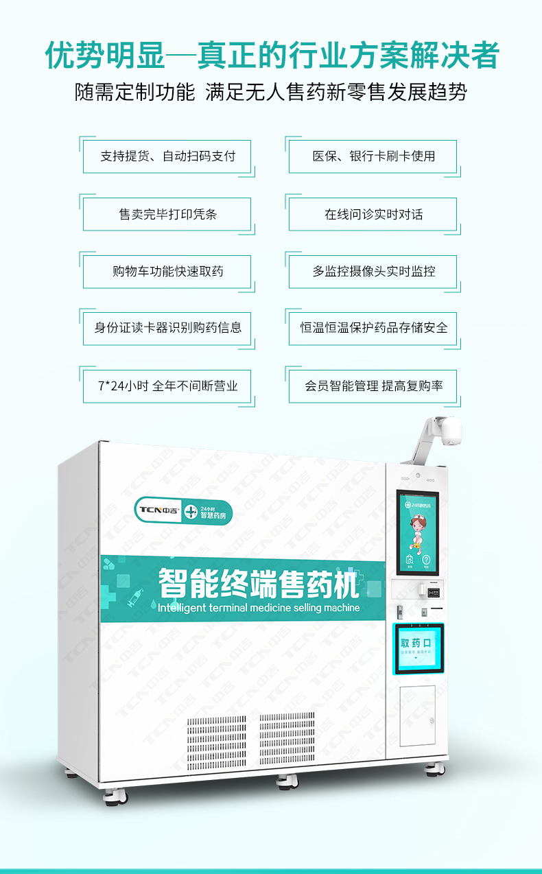 中吉智慧医药触屏自助售药机滑式货道24H自助售药站 | 医药品、医药耗材类专业售货机,可选配制冷