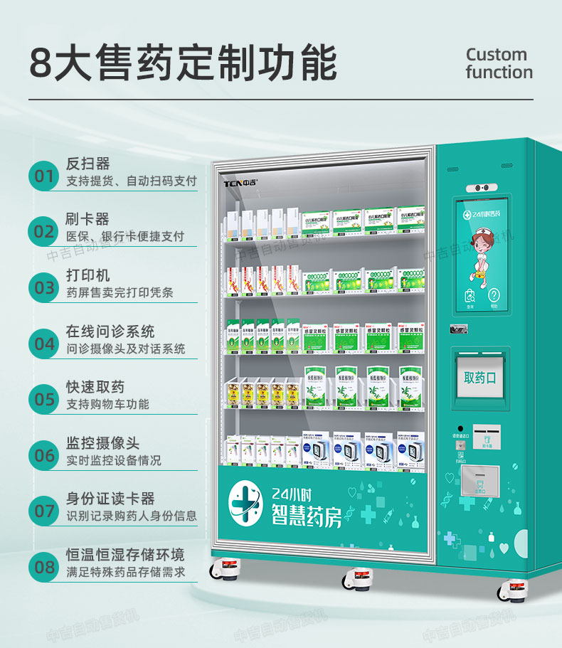 中吉智慧医药触屏自助售药机滑式货道24H自助售药站 | 医药品、医药耗材类专业售货机,可选配制冷