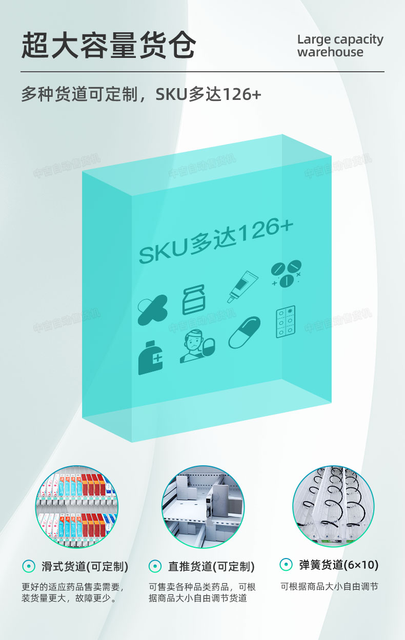 中吉药品无人售货机24小时自动售药机保健品自动售货机 | 取货篮自动寻址,取货过程平稳适合易碎商品