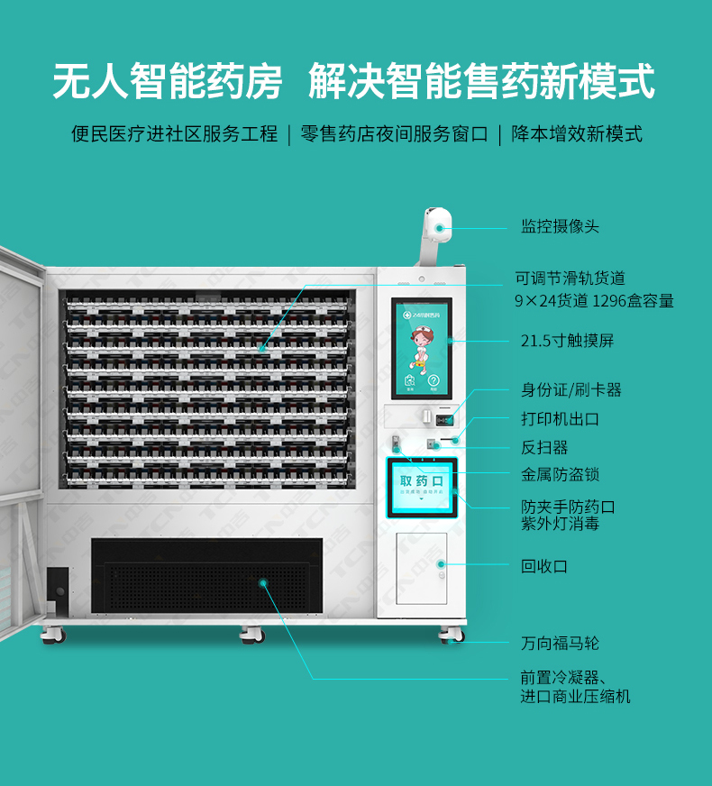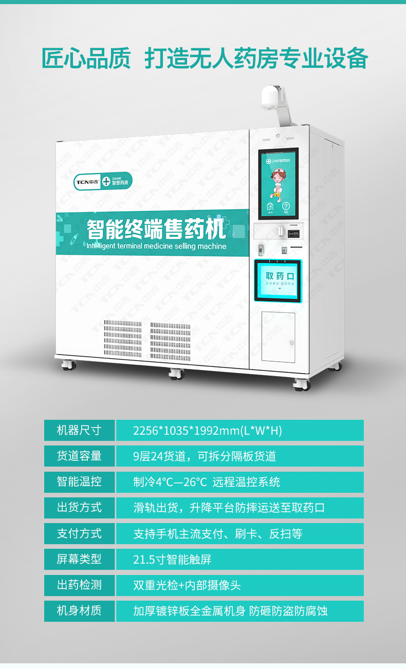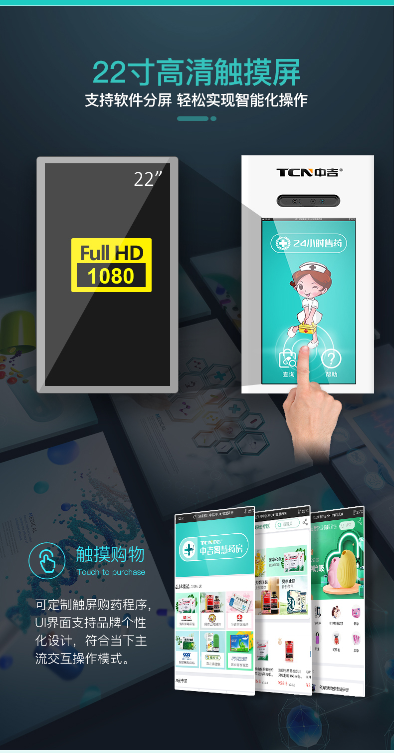 中吉智慧医药触屏自助售药机滑式货道24H自助售药站 | 医药品、医药耗材类专业售货机,可选配制冷