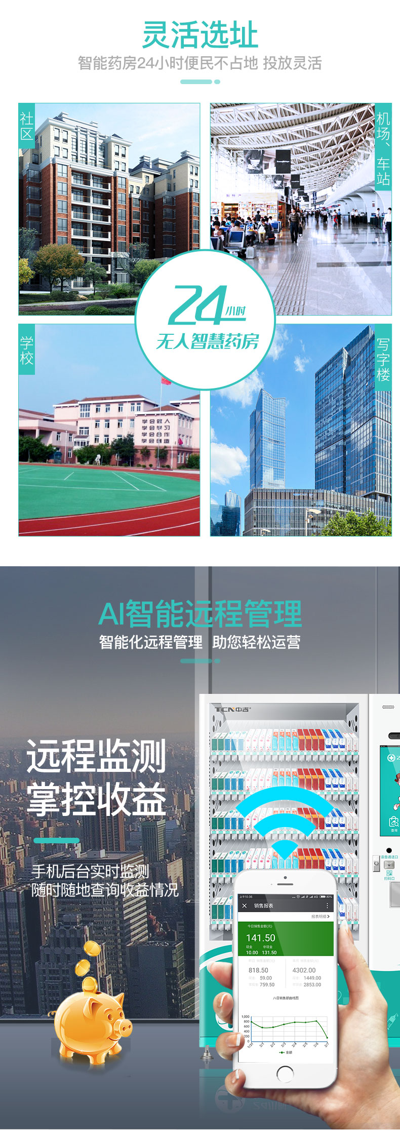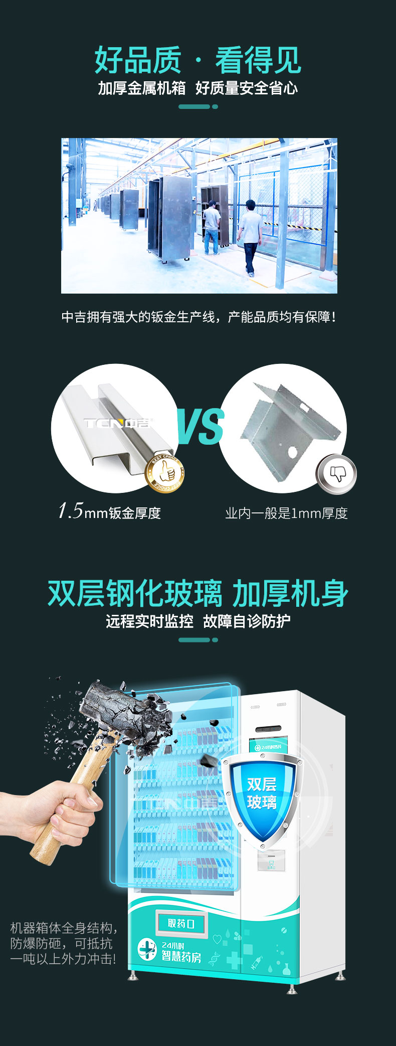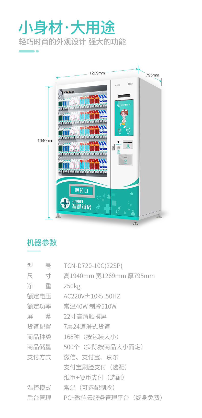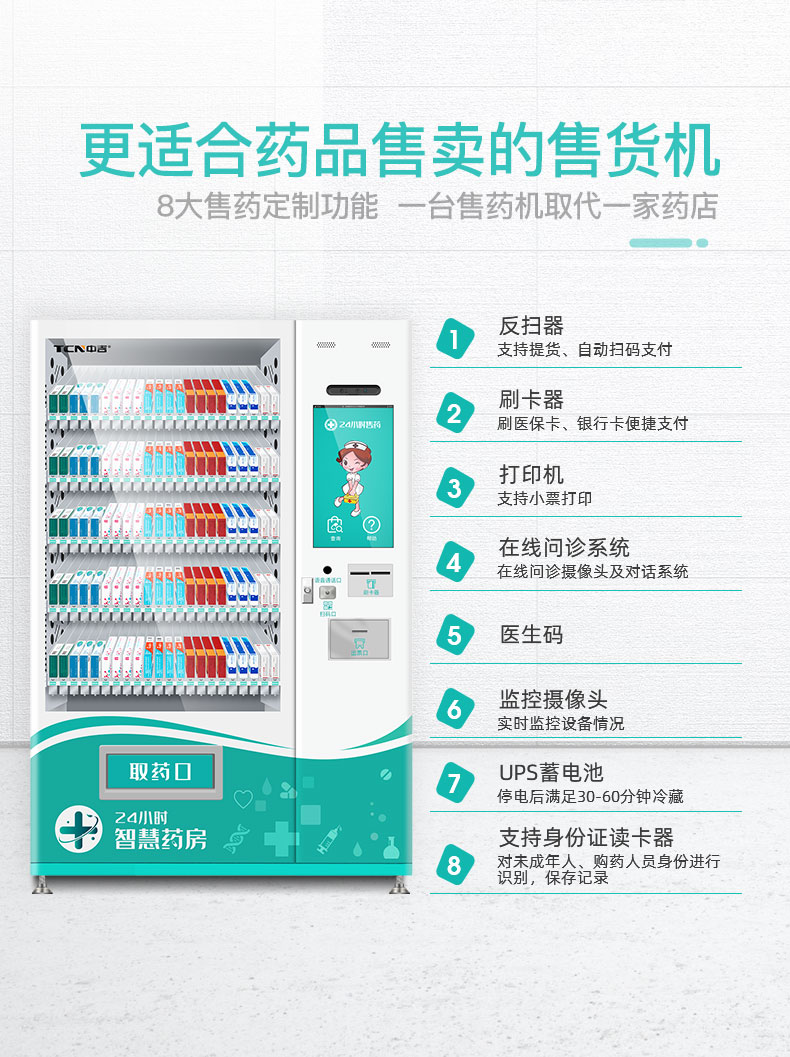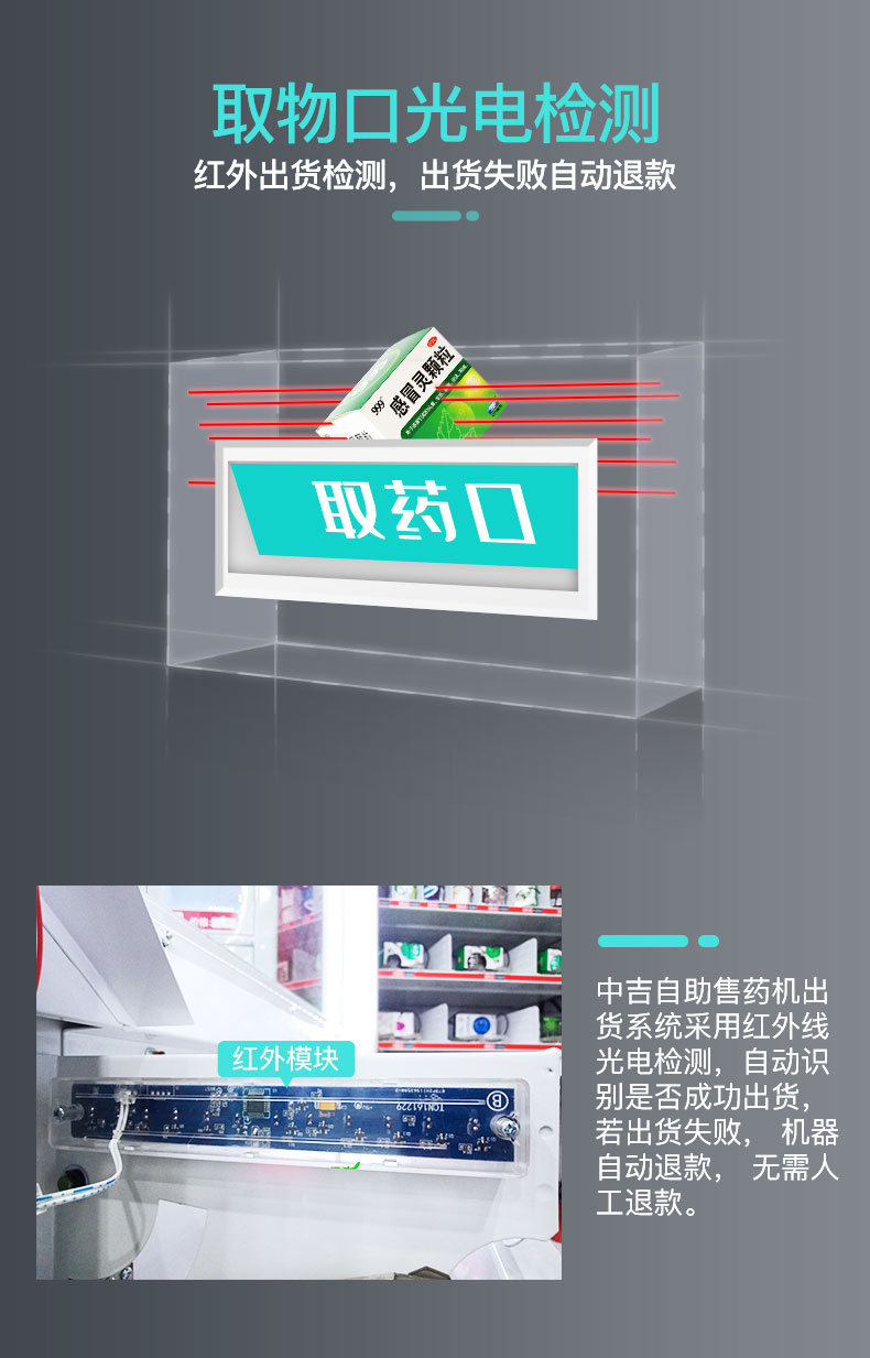中吉智慧医药触屏自助售药机滑式货道24H自助售药站 | 医药品、医药耗材类专业售货机,可选配制冷